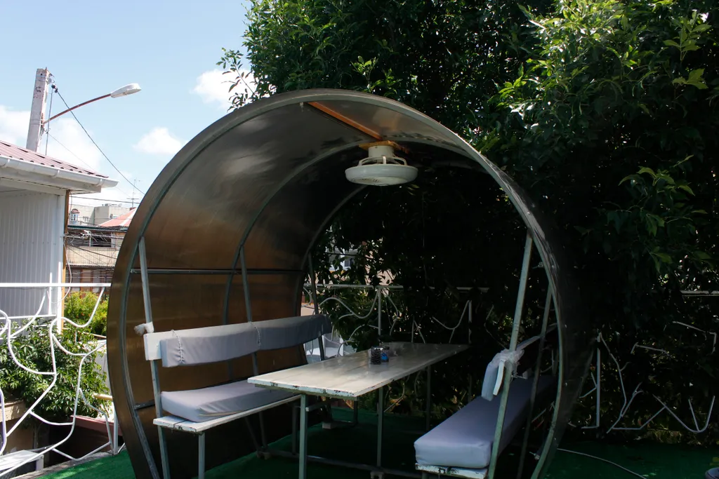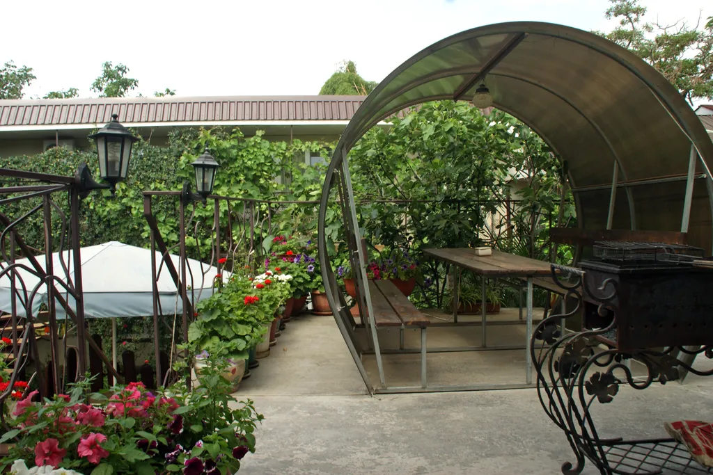 Пространство отдыха разделено на несколько уровней с уютными столиками и зонами барбекю — каждый найдёт себе комфортное место, будь
