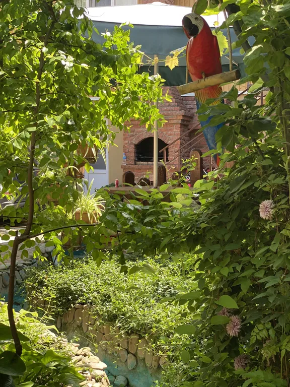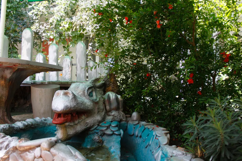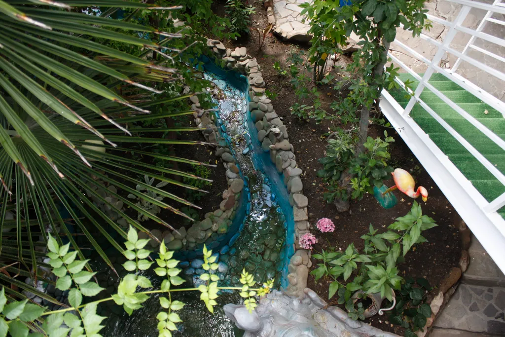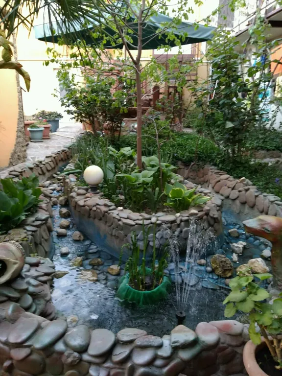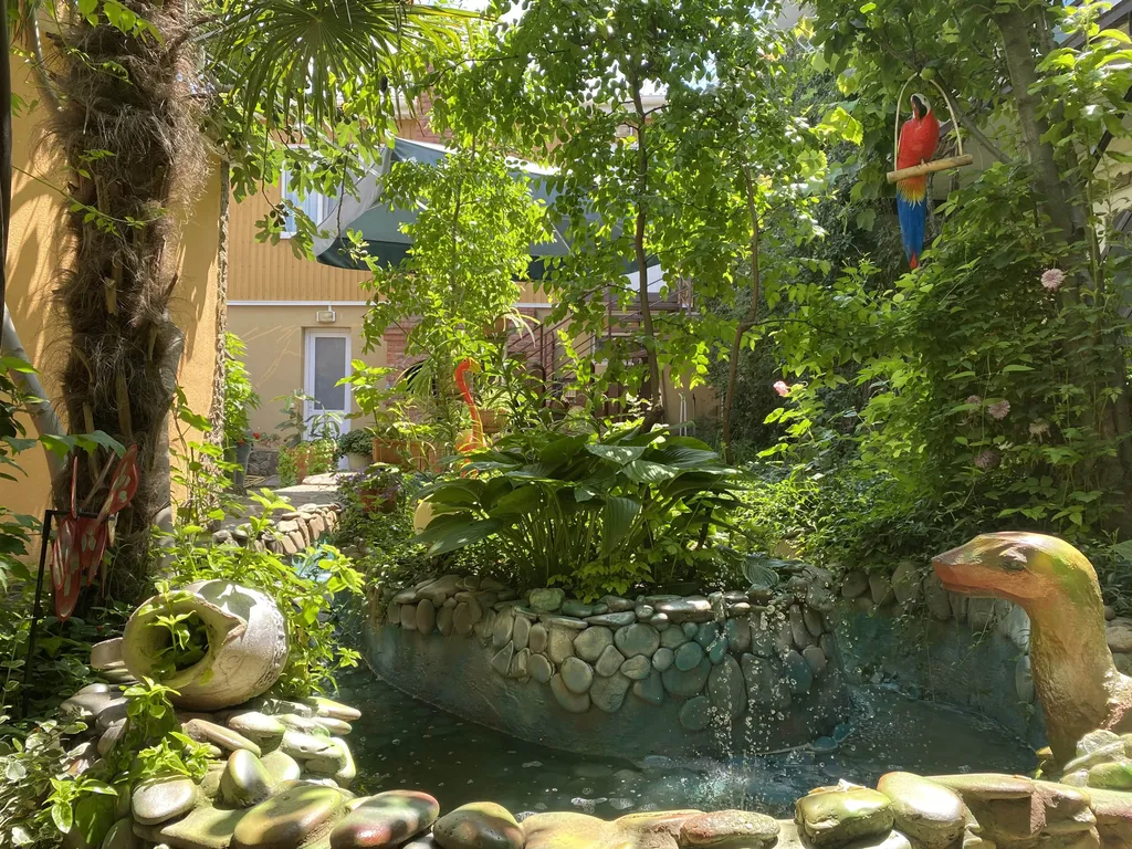 Во внутреннем дворе — зелёный сад с фонтаном и живыми тенями от деревьев, где приятно выпить утренний кофе, укрыться от солнца в разгар дня или провести тихий вечер.