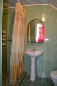 Так же имеются три бюджетных номера с удобствами на этаже (т. Е. Общий санузел, в комнате кровать, тумбочка, гардероб, вентилятор, спальные принадлежности, полотенца).