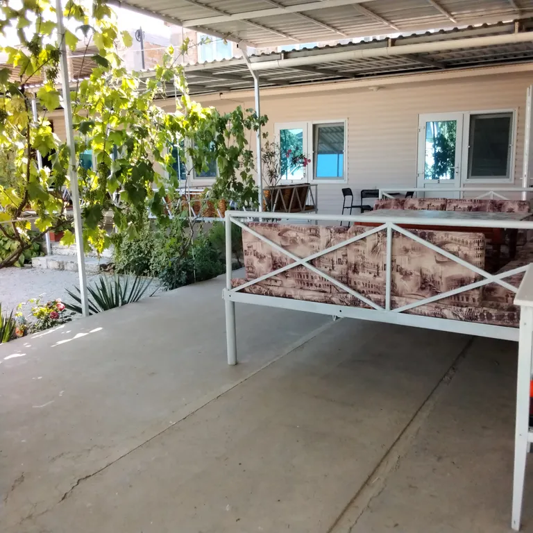 Дворик с тапчанами, зона отдыха. Также можно пожарить мясо, шашлык.